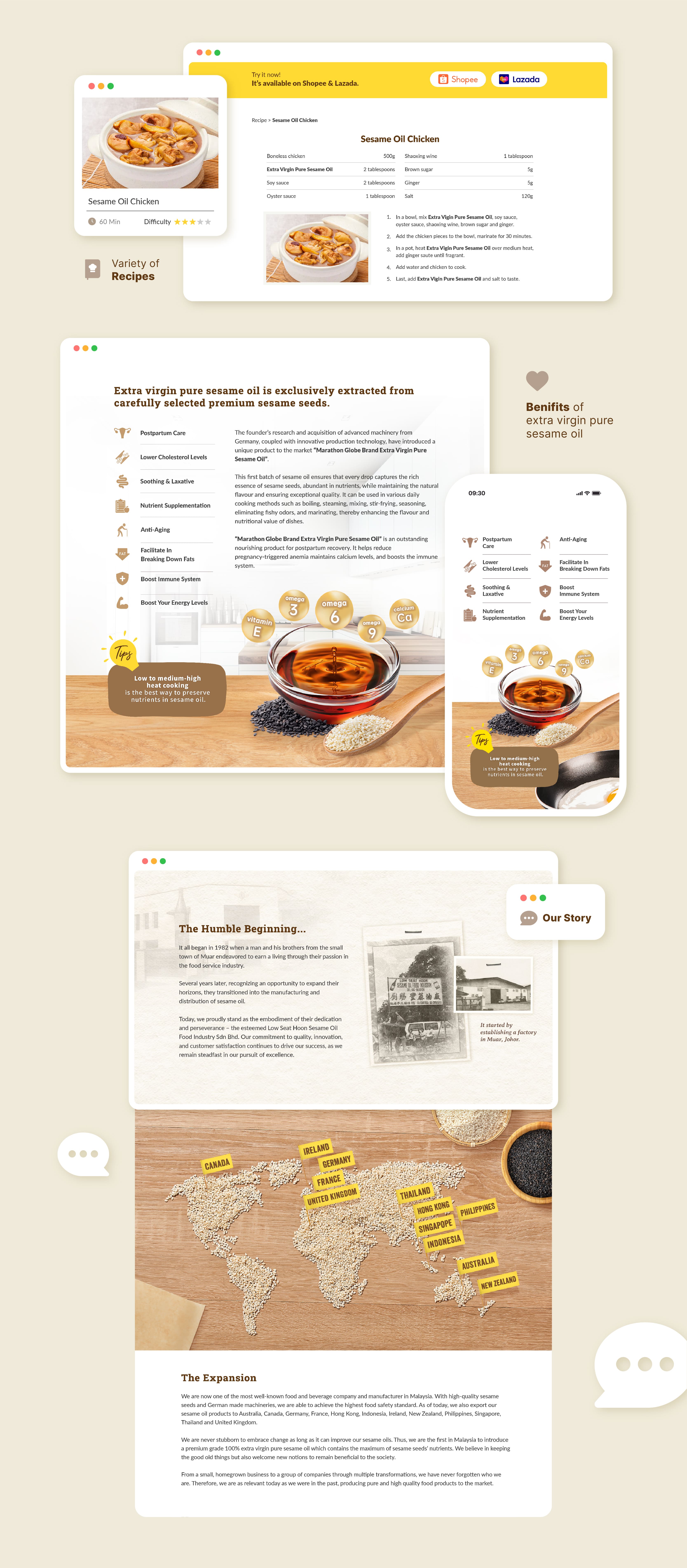 The new brand essence revolves around purity, tradition, and innovation. With enhanced navigation, users can explore the range of sesame oil products, discover delicious recipes and learn about the health benefits.