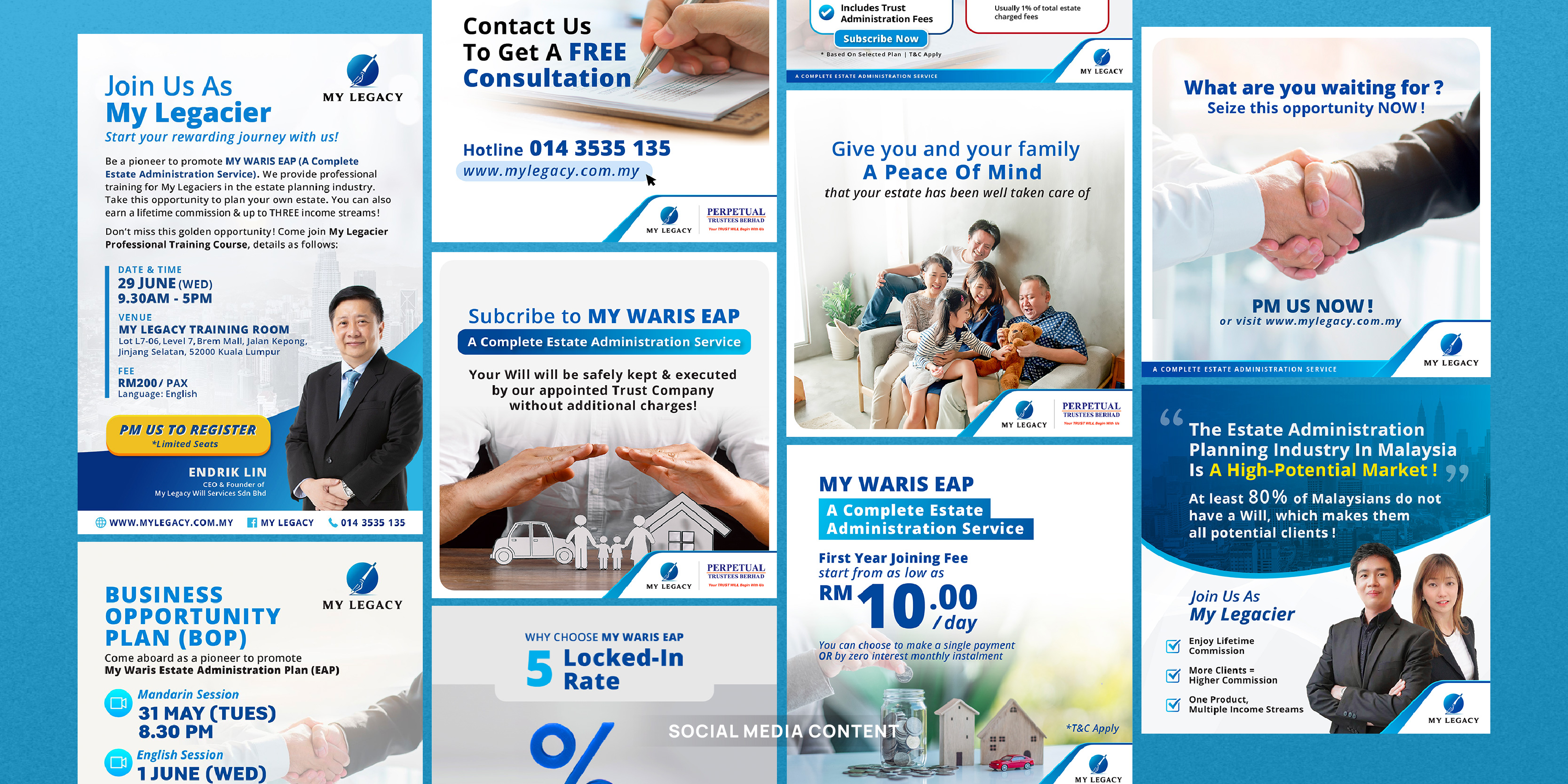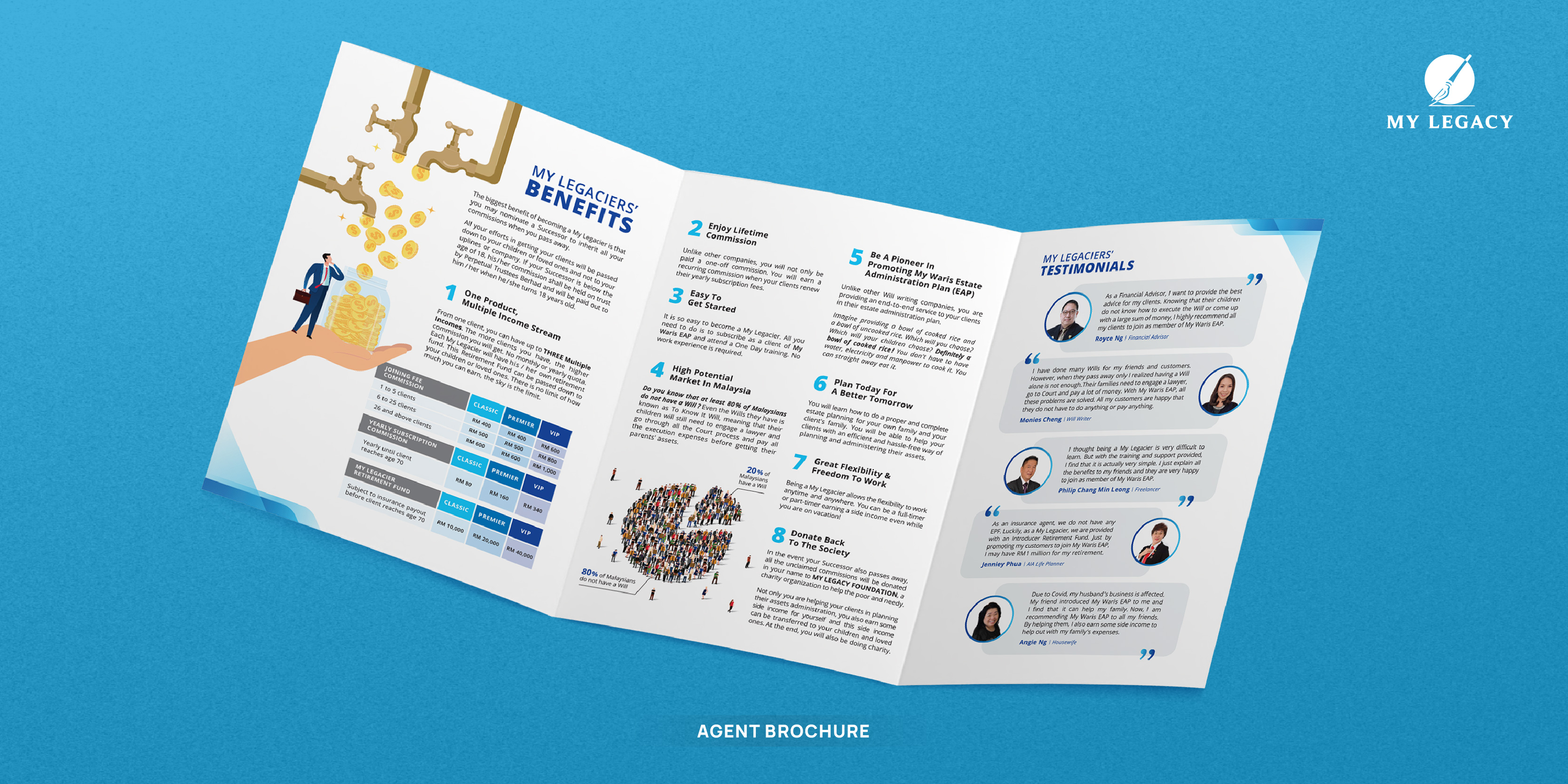 Blue, a calming colour, symbolizes reliability and stability. Most of the images revolve around heart-warming scenes of family togetherness and happiness, conveying the meaning of 'giving you and your family peace of mind.'