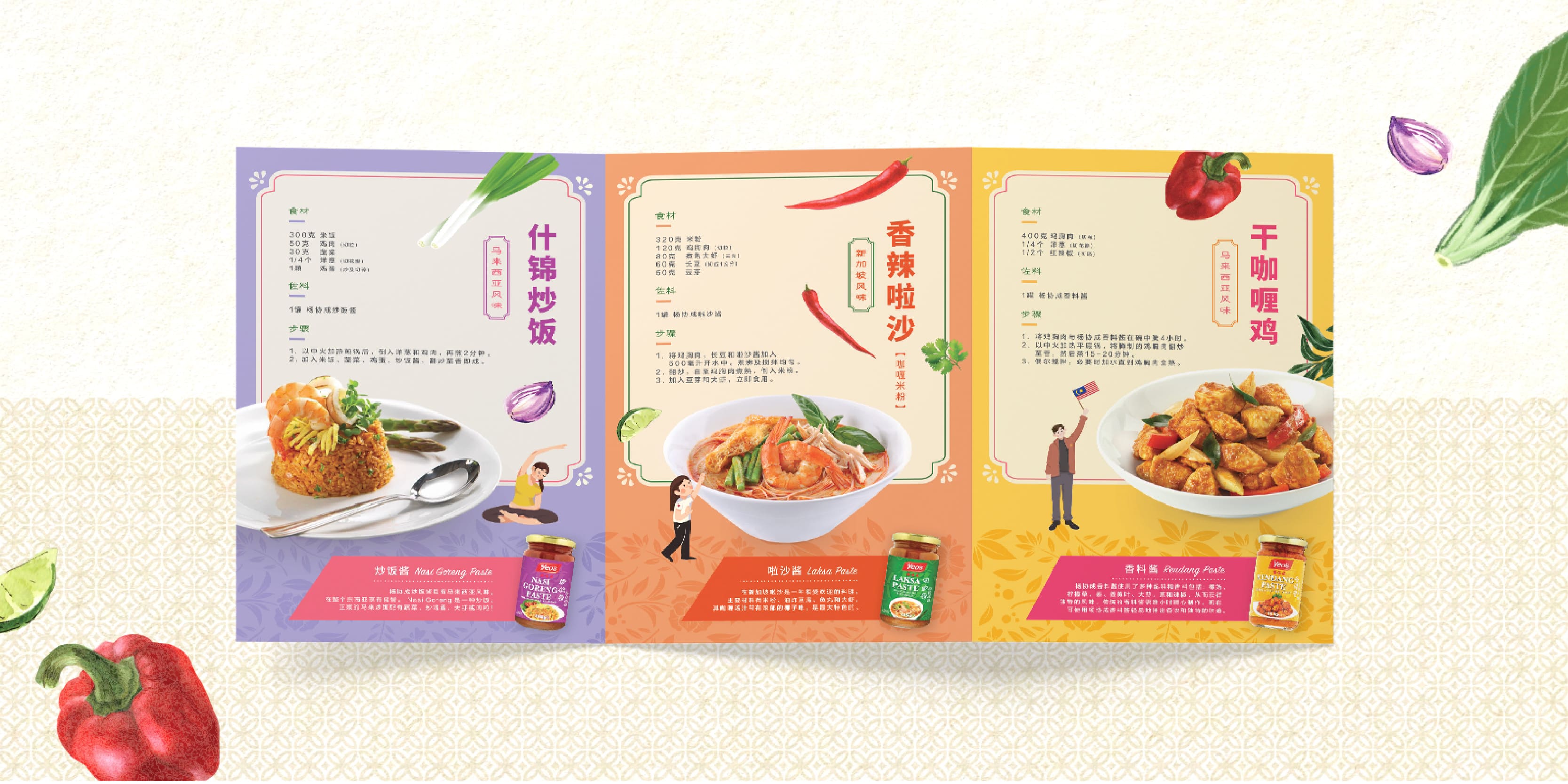 Discover a recipe book design blending Nyonya tradition with vibrant totems. Pastel colours adorn each page, celebrating culinary heritage. With the hand-drawn characters guide you through authentic dishes with warmth and joy, embodying the relaxed essence of Southeast Asian flavors.